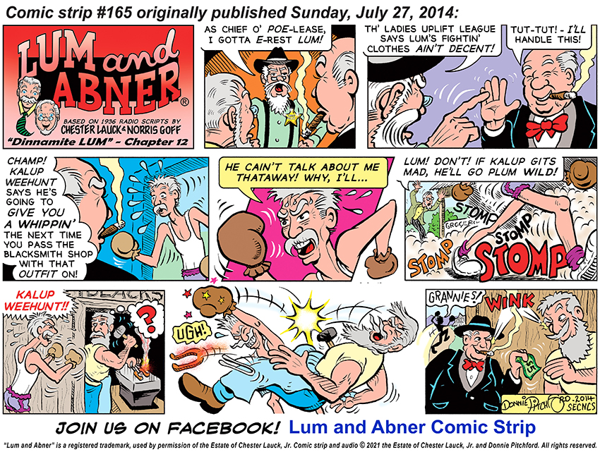 Hmm! So just how did Squire “take care of” the situation with Grandpap and Lum’s pending “e-rest” when the strip suddenly shifted to the stunt with Kalup? Don’t ask me, I’m just the cartoonist. (Har-har!)