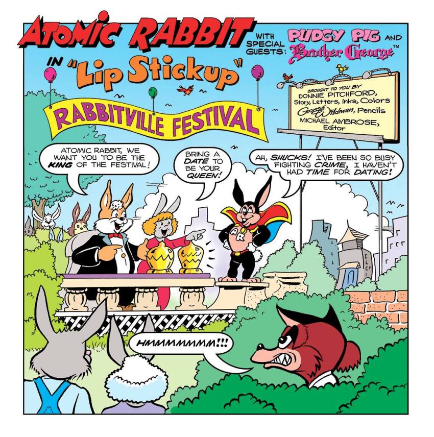 Our final work together was a 2015 Atomic Rabbit story for Charlton Spotlight #10. George produced the pencil art and I provided the script, hand lettering, inking, and coloring.