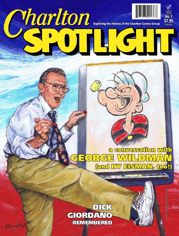 We spent time together again in 2004 and 2009, and those times my wife Laura was able to be along. In 2011 I was commissioned to paint a portrait of George in action for Michael Ambrose’s Charlton Spotlight magazine (click here to see). A few years later, I scripted two stories featuring Timmy the Timid Ghost (one of the first characters George illustrated in the late 1950s) for Charlton Spotlight Comics. George penciled and inked these stories and I provided hand lettering and coloring.