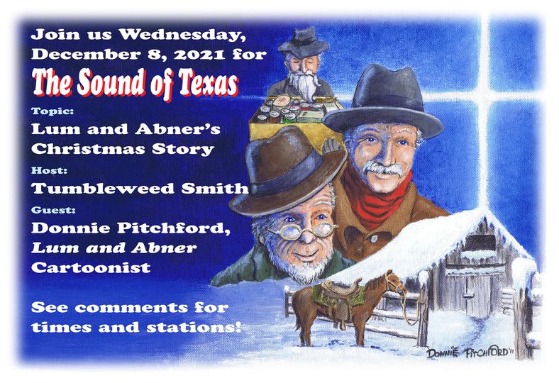 The Texas-wide radio program The Sound of Texas will feature highlights of the beloved Lum and Abner episode known as “Lum and Abner’s Traditional Christmas Story” on Wednesday, December 8, 2021!