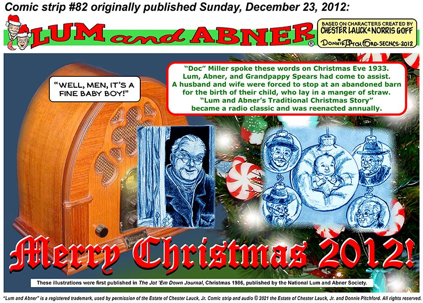 Here is the second Christmas comic strip in the Lum and Abner series originally published in 2012! Like the one from 2011, this is also based on the classic script first performed by Chester Lauck and Norris Goff in 1933.
