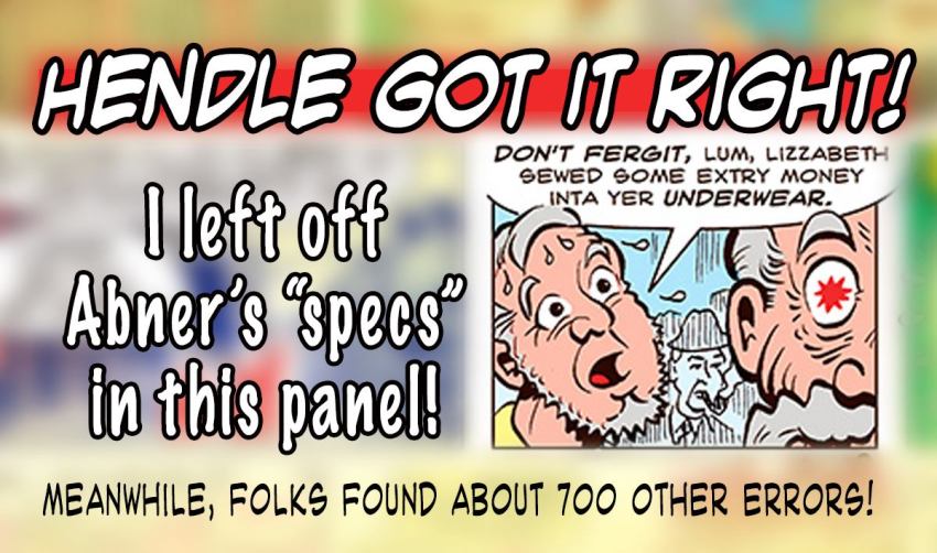 In Lum and Abner #423, I made a blunder! I asked readers to let me know if they found the mistake! Hendle Rumbaut, who voiced Evalena, found it: