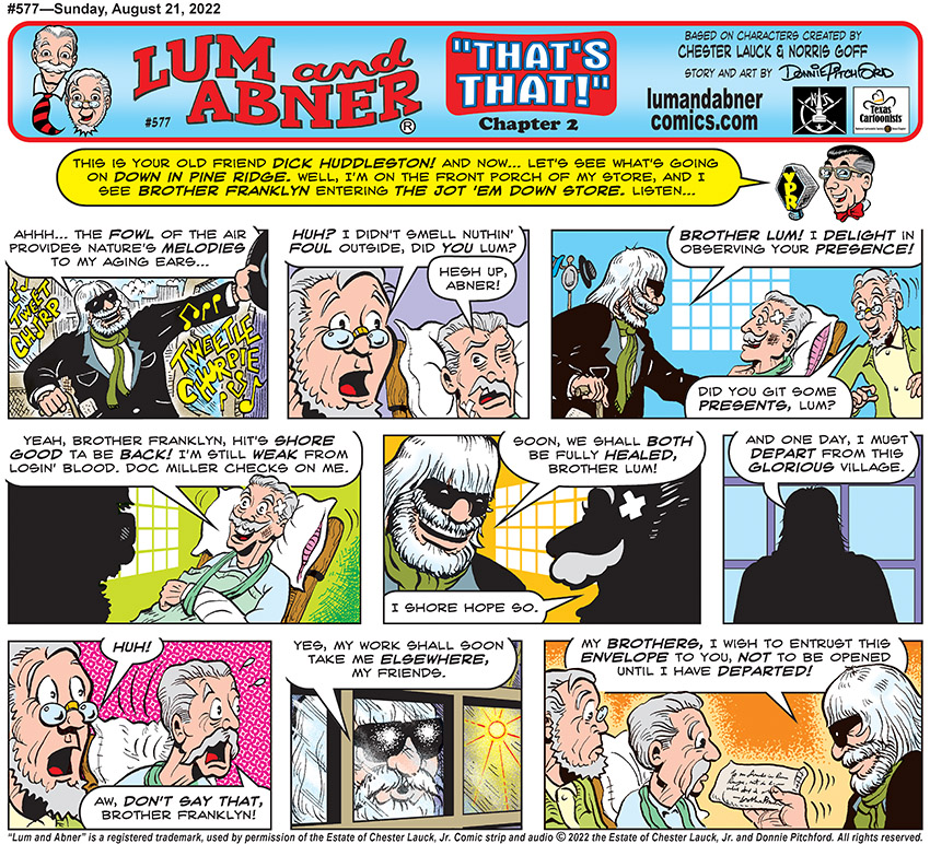 We’ll be back on Sunday, September 4, 2022 with a new Lum and Abner comic strip! The weekly schedule will resume then.