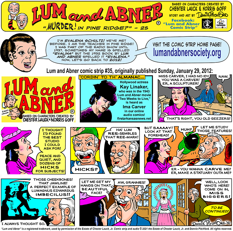 The voices of Kay Linaker were recorded at the 2003 National Lum and Abner Society Convention.