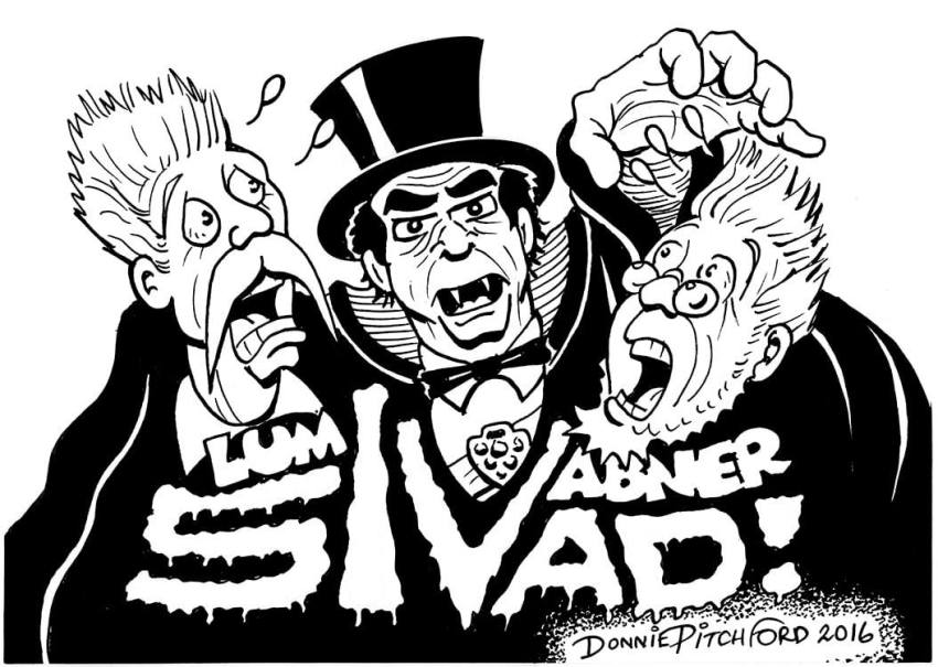 I never got to meet Sivad, but around Halloween of 2014 I was honored to be booth neighbors with Oklahoma’s legendary movie host Count Gregore (John Ferguson) at OAF Con in Norman, Oklahoma! We had lots of great chats, and the Count read and listened to the Lum and Abner Halloween strip featuring Sivad when it was published that Sunday!